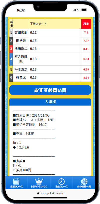 『ポケフネ』は登録費、年会費、買い目の閲覧を含め完全無料となっています。