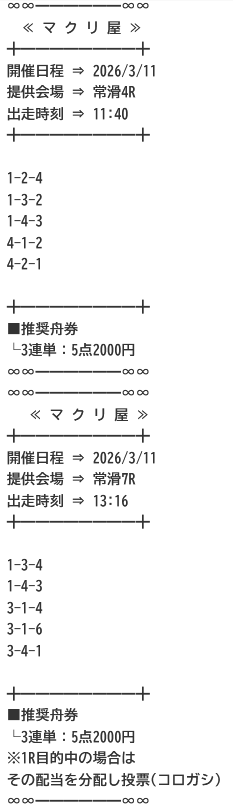 常滑4R⇒常滑7Rの有料予想が炸裂!
